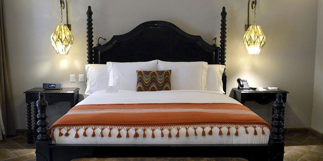 Lo que distingue a esta lujosa habitación es su incomparable espacio que permite a familias compartir su experiencia sin perder la esencia de una grandiosa estadía. La lujosa habitación de 37 m² está dotada de una cama King size con un cabecero de madera rústica, con muebles eclécticos de época, pisos de cantera avejentada y sus fabulosos elementos arquitectónicos que terminan fusionándose con la decoración clásica y elegante te harán sentir en un atmósfera acogedora y de vanguardia.